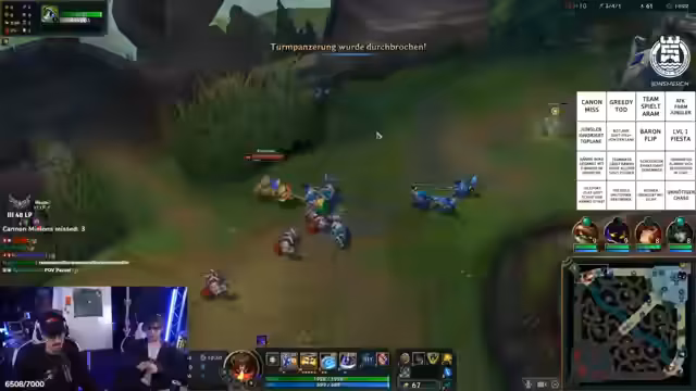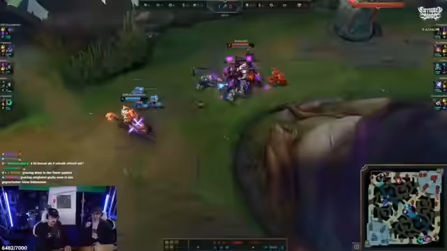 07:44:52Im letzten Spiel des Streams wird Singed im Toplane gespielt. Gegen Nunu in der Lane beschreibt Streamer die Matchup als besonders schwierig. Sein Team kämpft mit Koordinationsproblemen, während die Gegner aggressiv Objektive wie Drake und Herald kontrollieren. Trotz guter Split-Push-Strategie von Streamer ist die Situation aussichtslos.