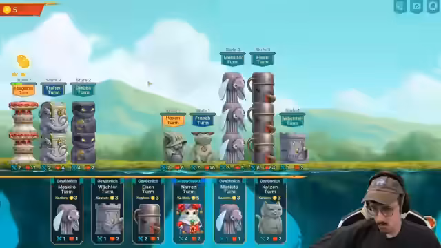 04:21:02Es wird eine Tower Defense Runde gespielt, bei der der erste Turm pro Runde kostenlos ist. Es wird mit verschiedenen Turmtypen experimentiert, darunter Drachen und seltene Türme, um die optimale Strategie zu finden. Der Fokus liegt auf dem Aufbau einer starken Verteidigung und dem Sammeln von Gold und Erfahrungspunkten. Es wird eine Mechanik demonstriert, bei der Handkarten in antike Türme umgewandelt werden können, um spezielle Effekte zu erzielen. Der Ruinenturm wird als Honigturm-Ersatz vorgestellt, der zu Beginn einer Runde einstürzt und zufällige Türme verstärkt, bevor er dauerhaft entfernt wird. Der Verteidigerturm erhält temporäre und permanente Boni, wenn Monster Türme angreifen. Ziel ist es, den Blumenturm zu schützen und gleichzeitig die Verteidigung mit verschiedenen Turmkombinationen zu optimieren. Ein Boss mit 2500 Leben und der Fähigkeit, alle Türme um ein Level zu reduzieren, stellt eine besondere Herausforderung dar. Nach dem Besiegen des Bosses wird ein zusätzlicher Bauplatz freigeschaltet und Türme mit Tiermotiven erhalten am Ende jeder Runde 5 LP.