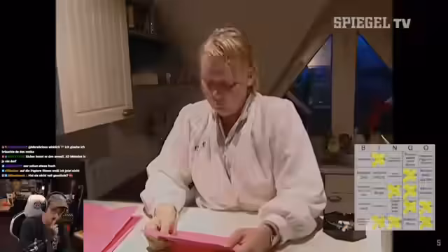 00:25:10Ein Bingo-Spiel wird vorbereitet, bei dem der Chat mitmachen kann. Ein Kommentar zu einem Video zur Ostfriesland-Doku wird hervorgehoben. In der Dorfpolizei Folge wird die Verhaftung eines Mannes wegen eines Haftbefehls gezeigt, der wegen Steuerhinterziehung verurteilt wurde. Er wird in die Justizvollzugsanstalt Lingen überführt. Es wird über die Höhe der Strafe und die Möglichkeit der Haftbefreiung durch Zahlung einer Geldstrafe diskutiert. Die Polizisten wollen den Mann ohne Vorankündigung stellen, da Fluchtgefahr besteht. Es wird über die stereotype Darstellung der Beamten und die Authentizität der Serie diskutiert. Es wird über die Möglichkeit eines Interieurporns gesprochen, wenn die Kamera während eines Streits auf Puppen auf der Kommode schwenkt.