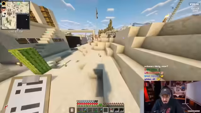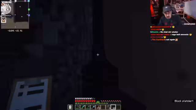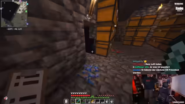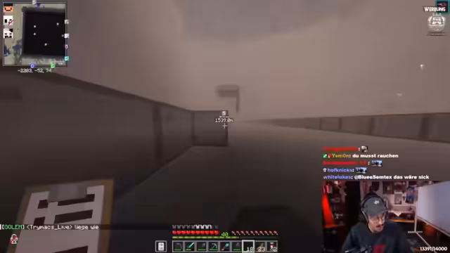 05:25:16Ein akuter Notfall entsteht, als Lava hinter einer aus Wolle bestehenden Wand entdeckt wird und diese zu entzünden droht. Der Streamer baut eine 188 Blöcke hohe Wolle-Wand auf und muss feststellen, dass die anfängliche Annahme eines ausreichenden Sicherheitsabstands von zwei Blöcken zur Lava falsch war. Mehrere Ausbrüche durchbrechen die Wolle, was den Verlust tausender gesammelter Blöcke und eine existenzielle Bedrohung für das Projekt bedeutet. Eine schnelle und koordinierte Löscharbeit ist erforderlich, um den Schaden einzudämmen.