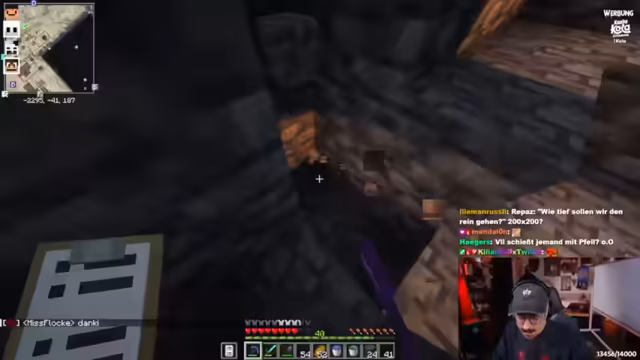 07:31:11Der Streamer konzentriert sich darauf, einen kaputten Chunk-Loader in der Minecraft-Farm zu reparieren. Dieser ist entscheidend, damit die automatisierte Farm auch dann funktioniert, wenn keine Spieler in der Nähe sind. Nach eingehenden Erklärungen durch Chat-Teilnehmer über den Aufbau des Loaders, der Minecarts durch ein Nether-portal schickt, beginnt der Streamer mit der Reparatur. Es erfordert präzise Arbeit, da man das Portal mit Obsidian sichern muss, um unerwünschte Eindringlinge zu verhindern.