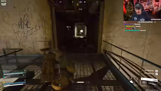 04:11:08Die Spieler erkunden den Kontrollturm und finden einen Ball, was darauf hindeutet, dass hier noch niemand war. Sie entdecken Zecken, die sie abknallen müssen, um sie explodieren zu lassen, was zu einem Verlust des Schildes eines Spielers führt. Sie versuchen, einen Weg nach oben zu finden, um den Kontrollturm zu erreichen, sind sich aber unsicher über den richtigen Aufgang. Ein Spieler fällt von einer Leiter und stirbt, was zu Verwirrung und Diskussionen über die Mechanik des Fallschirms und der Leiter führt. Es wird festgestellt, dass man Leertaste spammen muss, um sich an der Kante festzuhalten. Die Gruppe findet heraus, dass andere Spieler an derselben Stelle gestorben sind, was den hohen Beutewert erklärt.