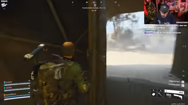 04:48:49Die Gruppe entdeckt Gegner in einem Gebäude und plant, diese strategisch zu umgehen oder anzugreifen. Es wird überlegt, rechts durchzukommen, um den Exit über ein Fenster zu sehen, oder direkt auf das Gebäude zu gehen, wie von einem Teammitglied vorgeschlagen. Die Gefahr, von oben angegriffen zu werden, wird erkannt. Währenddessen wird ein Laser gesichtet, der sich als Wachturm herausstellt, und es wird festgestellt, dass Gegner in der Nähe die 'Queen' bekämpfen. Die Strategie, sich an die kämpfenden Gruppen heranzuschleichen, deren Loot zu nehmen und direkt zu extrahieren, wird diskutiert. Ein Spieler bleibt auf einer erhöhten Position, während die anderen vorrücken, um die Gegner zu überraschen. Der Plan geht auf, und die Gruppe kann die Gegner besiegen und wertvollen Loot sichern, darunter einen Defibrillator und eine Kampfmarke 2.