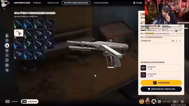 03:52:33Die Spieler besprechen die Verbesserung ihrer Ausrüstung und Waffen. Sie können Waffenteile durch das Zerlegen von Waffen außerhalb des Spiels erhalten und in der Werkstatt neue Gegenstände herstellen. Für die Verbesserung der Waffenstation benötigen sie Wespentreiber, verrostete Werkzeuge und mechanische Komponenten. Um diese Items zu finden, planen sie, spezifische Orte auf der Karte anzusteuern, die diese Art von Loot bieten, wie den Schrottplatz oder den Kontrollraum der Wasseraufbereitung. Ein Spieler rüstet sich mit Kampfmarke 2, mittlerem Schild und Anvil Stufe 4 aus. Sie erwägen, Rauchgranaten mitzunehmen und diskutieren über die Möglichkeit, ein Renegade 1 oder Anvil für 15.000 bis 21.000 zu kaufen, was jedoch nur einmal alle paar Stunden möglich ist.