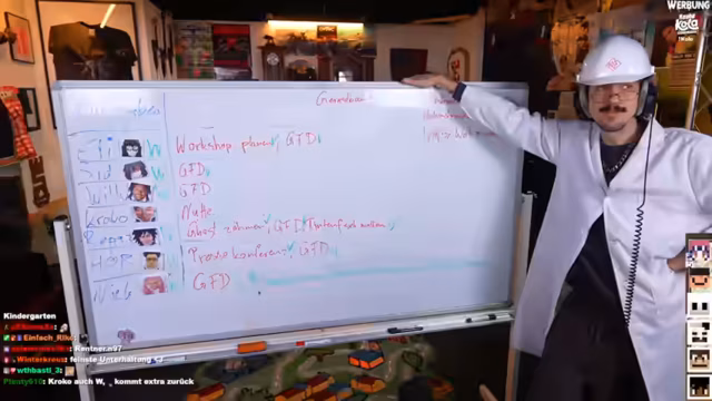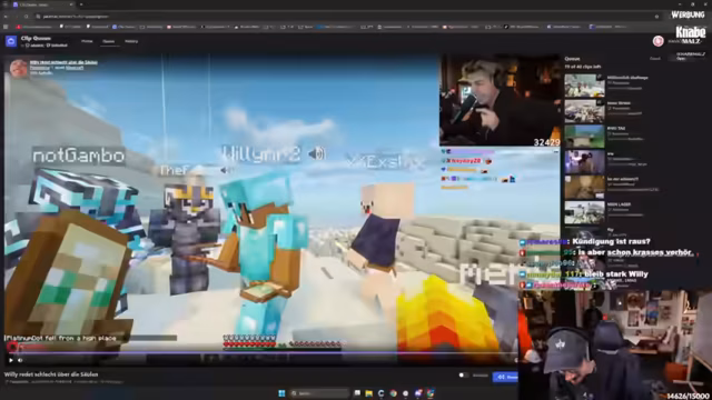 04:08:29Es wird eine Diskussion über die Präzisierung des Streamtitels geführt, um Missverständnisse bezüglich der Identität des 'größten deutschen E-Sportlers' zu vermeiden. Der Titel wird schließlich zu 'Mit dem größten deutschen E-Sport-Schwindler' geändert, um eine falsche Wahrnehmung im deutschsprachigen Raum zu verhindern. Später wird bekannt gegeben, dass Kroko, der sich in China aufhält, früher als erwartet zurückkehren wird, da er 'krasse FOMO' hat und TikTok nicht mehr öffnen kann. Er wird voraussichtlich am nächsten Morgen um 6:30 Uhr zu Hause sein und um 7 Uhr streamen. Es wird auch über die Schwierigkeit gesprochen, einen Zaun seitlich zu platzieren, was im Chat als unmöglich bestätigt wird.