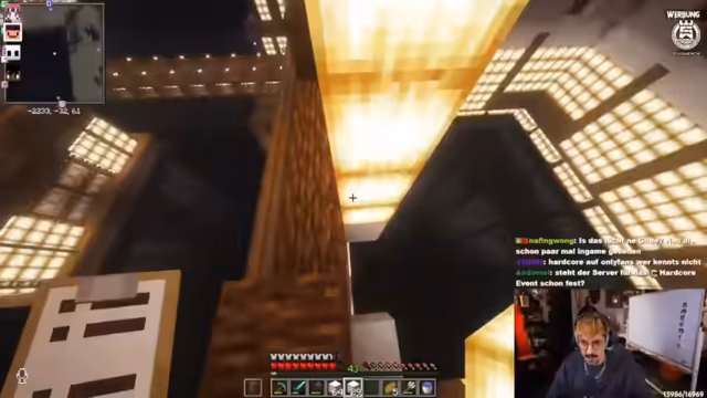 07:26:40Die Vorfreude auf das WoW Hardcore-Event ist immens, da es als 'All-Time-Favorite' des Streamers gilt und 'extrem big' werden soll. Es wird erwartet, dass sich 'die Spreu vom Weizen trennen' wird, da das Projekt Ausdauer erfordert und einige Teilnehmer möglicherweise frühzeitig aussteigen werden. Die Beteiligung fast aller bekannten Streamer aus verschiedenen 'Bubbles' wird als 'krass' und 'richtig cool' beschrieben, was auf interessante Aufeinandertreffen und Herausforderungen hindeutet, wie beispielsweise der Bedarf an 'Froglight'. Parallel dazu wird im Craft Attack-Projekt intensiv an Gebäuden gearbeitet. Die Komplexität des Bauens, insbesondere eines 'Dreckshaus' und eines 'Turm mit Leiter', wird hervorgehoben. Es wird auch über die Schwierigkeit gesprochen, ein großes, schräges Gebäude zu spiegeln und die benötigten Materialien wie 'weiße Wolle' und 'Gerüste' zu organisieren. Die Fortschritte der anderen Teammitglieder, die 'sieben Gebäude die ganze Zeit hochziehen', werden anerkennend zur Kenntnis genommen.