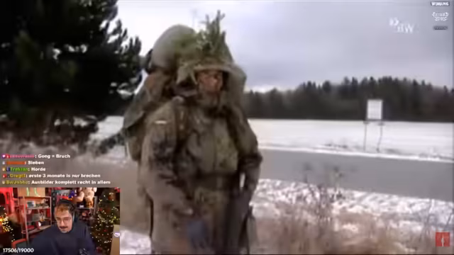 04:41:35Aufgrund der unüberwindbaren technischen Probleme mit dem Horror-Spiel wird der Stream abrupt abgebrochen. Der Streamer schaltet zu einer Doku über die Bundeswehr, um den Inhalt des Streams fortzuführen. Es beginnt die Betrachtung einer Übungseinheit, in der Rekruten durch extreme körperliche Anstrengungen und Drill in der Kälte geführt werden, wobei insbesondere eine kranke Rekrutin und der rigide Umgang der Ausbilder thematisiert wird.