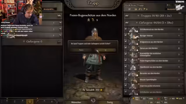 06:38:43Nach der Schlacht wird der erbeutete Loot, darunter seltene Gegenstände wie ein 'verzierter Schild aus dem Norden', verkauft, was zu einem massiven Anstieg des Goldbestands führt. Dies ermöglicht es dem Streamer, seine Truppen zu unterhalten und zukünftige Ziele zu verfolgen. Sein Ansehen im Spiel steigt durch die Siege, was ihm Boni wie erhöhten Ansehenszuwachs und schnellere Truppenrekrutierung verschafft. Er plant, seine Einnahmen durch den Bau von Werkstätten und Karawanen zu erhöhen, um eine noch größere Flotte zu finanzieren und schließlich eine eigene Fraktion zu gründen.