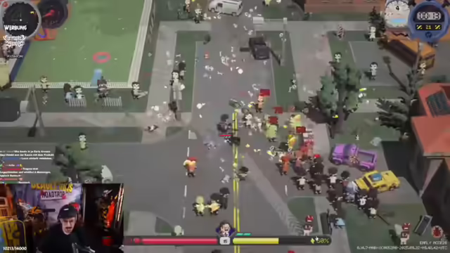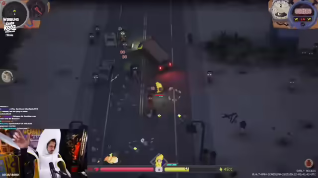 05:58:00Es wird erwähnt, dass man nicht mehr warten muss, und die Spannung darauf, dass eine Million Leute das Spiel spielen können, wird thematisiert. Es wird überlegt, ob die Leute den Tod besiegen werden. Es wird kurz über falsch geschriebene Wörter im Chat gescherzt. Der Streamer äußert sich gespannt darauf, wie das Global Leaderboard aussehen wird. Es wird ein Molotow-Cocktail fertiggestellt und die Knabe-Cola-Dose kopiert. Es wird die Frage aufgeworfen, wie man rote Items craften kann, und erklärt, dass dies durch Metaprogression in der Lobby freigeschaltet wird. Es wird eine Wette gestartet, ob der Streamer den Endboss bei Tag 8 schafft oder ob er es in den Endlos-Modus schafft. Es wird über die Menge an Äpfeln diskutiert, die in der Demo gefarmt wurden, und warum nur ein Teil davon angerechnet wurde. Es wird festgestellt, dass die Zombies auf die Dosen chargen und dass mehr Platz benötigt wird. Es wird überlegt, warum es Cola nicht in 0,5 Liter Dosen gibt, und festgestellt, dass man diese auf einmal trinken müsste. Es wird festgestellt, dass die Zombies einen nicht targeten, sondern nur auf die Cola-Dosen aus sind.