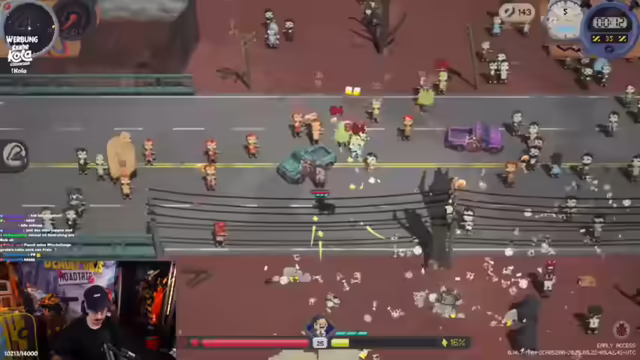 02:16:13Durch die Eingabe des Codes "erst knackt's, dann knallt's" wird Presse den Knabe freigeschaltet, was für den Streamer auch eine Premiere ist. Presse den Knabe war mal der Chef einer Cola-Fabrik und flieht nun vor Zombies, wobei er selbst während des Weltuntergangs auf angemessene Geschäftskleidung besteht. Er hat eine Knabe Cola und eine Pistole dabei. Alle fünf Sekunden wirft er eine Cola-Dose, die Gegner anlockt, dann explodiert und Schaden zufügt. Der Schaden erhöht sich pro Charakterlevel. Der Streamer vergleicht die Skalierung mit der der Sense. Er findet die Item-Tags wie Wurfwaffe, auslösbar, Sprengstoff aufblasbar und Nahrung einzigartig sehr gelungen. Er spielt zunächst Bananen und stellt fest, dass das Spiel jetzt im Early Access ist und noch Content kommt.