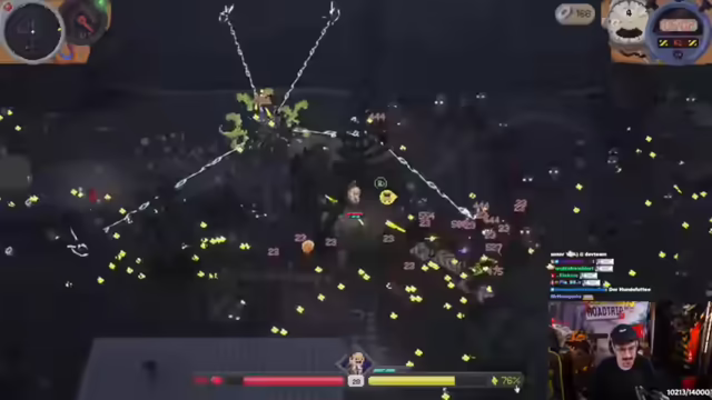 06:52:58Es werden alle Effekte runtergestellt und Zombiefleisch auf dem Boden entfernt, um das Raumschiff zu entdecken. Es wird festgestellt, dass die Zombies starstruck sind und sich nicht entscheiden können, wohin sie chargen sollen. Es wird überlegt, wie weit die mit dem Bananenbild gekommen sind. Es wird festgestellt, dass durch die Steine die ganze Zeit Wurfgeschosse getriggert werden, wenn EP eingesammelt werden. Es wird festgestellt, dass das Spiel wahrscheinlich back to back abstürzen wird. Es wird überlegt, ob man die Wettereffekte abbrechen kann. Es wird festgestellt, dass viele den Run schon fertig haben. Es wird überlegt, auf die Hantel zu dashen, dann fliegt man aus der Lobby. Es wird überlegt, worauf man jetzt gehen soll. Es wird festgestellt, dass Knabe Cola bei 11 Tagen Schluss ist. Es wird die Railgun als nächstes Ziel genannt und eine Bildidee, die ziemlich krass sein könnte. Es wird überlegt, Kettensäge zu spielen, was noch nie jemand gemacht hat. Es wird überlegt, Railgun Sheriff into Pizza Werfer zu spielen, weil man damit unendlich lange am Leben bleiben kann. Alternativ könnte man auch Kettensäge ausprobieren.