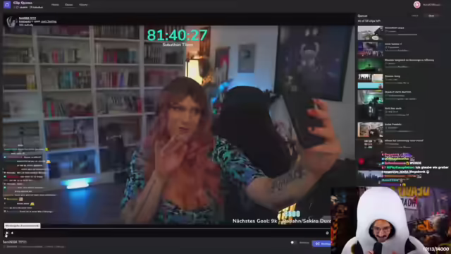 04:00:50Es wird über einen Spieler namens Vasily gesprochen, der herausgefordert werden soll, sobald er alles auf Stufe 10 hat. Der Streamer scherzt über einen 'Dealer' in Stuttgart und plant, ihm Knabe-Cola zu schicken, bis er 'ersäuft'. Es wird diskutiert, wie man 7TV beibringt und über Garnelen spricht. Der Streamer erklärt, dass er Stream-Chat über Stream Elements nutzt und dass ein Bild anstelle des Wortes 'Rentner' erscheint, wenn jemand 'Rentner' in den Chat schreibt. Vasily wird nach seiner letzten Woche gefragt, woraufhin er antwortet, dass er 13-15 Stunden am Stück Deadly Days gespielt hat und sein Leben durch das Spiel 'gefickt' ist. Er betont, dass er und Koko sich zusammengeschlossen haben, um etwas Cooles zu machen, während andere nur 'Sachen nackt gemacht haben'. Haji beschwert sich, dass er beim Versuch, einen Rekord aufzustellen, aufgehalten wurde. Es wird über Chico diskutiert, der das Spiel nicht spielt, obwohl er die Demo-Version gespielt hat und sauer war, dass er keinen Key bekommen hat.