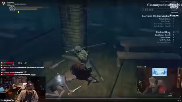 05:59:03Nach der Begegnung mit dem Verfolger stellt sich die Frage, wohin es als nächstes geht. Der Streamer entscheidet sich dafür, Benhart zu besiegen, um Zugang zur Pyromantin-Frau zu erhalten. Dies ist keine Entscheidung wegen der Pyromantie selbst, sondern aufgrund der damit verbundenen Vorteile für das Spiel. Währenddessen gibt es eine Diskussion über das Punktesystem für Invasions-PvE, die sich als zu komplex für den Contest herausstellt und daher nicht bepunktet wird.