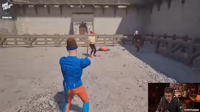 03:06:17Nach der geschäftlichen Session wird das Spiel Half Sword gespielt. Es handelt sich um ein mittelalterliches Kampfspiel mit hohem Skill-Aufwand. Der Streamer kämpft sich durch die Ränge von 'Peasant' auf, wobei er Schwierigkeiten mit der Steuerung und der Kampfmechanik hat, insbesondere dem 'Stechen'. Das Spiel wird als unforgiving und knifflig, aber fesselnd beschrieben.