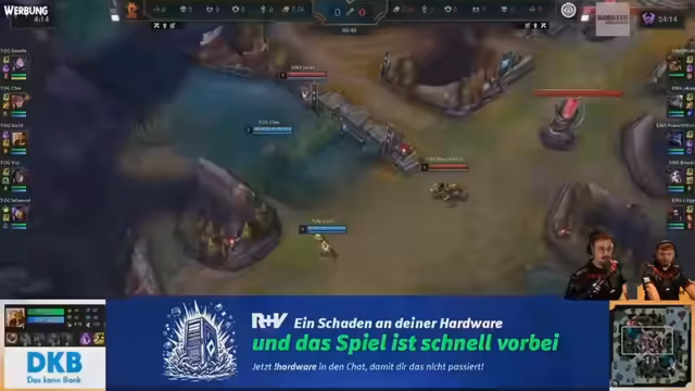 06:07:34Das Team tanzt um den Harrod. Das gegnerische Team ist gesplittet. In Funeral braucht akut Ibo 8000. Das Team pusht die Midlane raus und spielt hyperaggressiv. Bröki macht eine schöne Ult und Kappa Pride muss nach Hause. Tristan macht eine Ult und das Team holt alles. Der Harold wird platziert und die Wave gepusht. Orange Gaming schwitzt. Lilip macht einen Curve Shot auf die Bot Lane. Nach dem Spiel muss er in die Kurve zu den Ultrasse mit denen reden und erklären, was das war. Das Team muss verteidigen und T-Tasten aufstellen. Es wird über die Teamzusammensetzung und Nicknames diskutiert. Das Team muss progressen und seinen kleinen Lead vergrößern. Es wird guter Schaden auf 15 verursacht. Das Team nimmt den Botlane Tower und hält die Mitte. Das Team inszeniert ein Play auf einen Gegner und nimmt zwei Objectives. Rögi wird gerettet. Das Team macht ein Gegenplay. CP kommt auch noch gleich rein. In Funeral muss wieder in die Apotheke. Das erste Game war Draftive. Das Team ist gut dabei in der Liga.