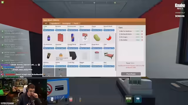 02:30:54Der Streamer plant die massenhafte Produktion einer neuen Drogensorte namens Analqual, um den Umsatz zu steigern und die Konkurrenz zu schlagen. Es besteht Zeitdruck, um Produktionskapazitäten auszubauen und qualitativ hochwertigeres Pseudo zu beschaffen. Ziel ist es, schnell Geld zu machen, um in die nächste Produktionsstufe aufzusteigen und eventuell Mitarbeiter einzustellen.