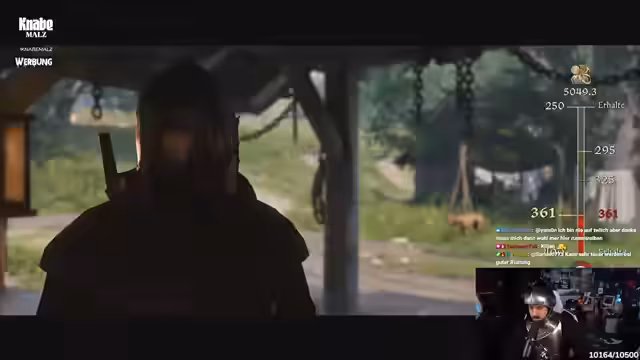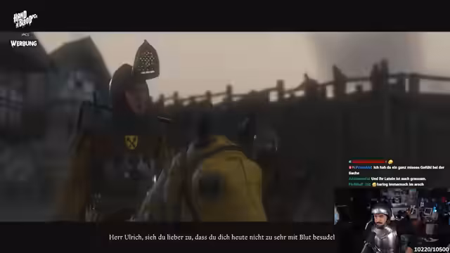 05:42:04Der Streamer, in der Rolle von Godwin, sucht nach seinen Freunden Hans und Heinrich und trifft dabei auf Überlebende und feindliche Lager. Er trifft auf Erik, einen Charakter aus dem ersten Teil des Spiels, und konfrontiert ihn mit der Frage nach den Gefangenen. Es stellt sich heraus, dass Hans und Heinrich gefangen genommen wurden. Um zu den Gefangenen zu gelangen, muss Godwin sich Erik und seinen Männern stellen. Nach einem gewonnenen Kampf gegen Erik erfährt Godwin, dass der Hauptmann mehr über Hans und seinen Freund Ischtwar weiß. Der Streamer vermutet, dass Katharina etwas mit der Situation zu tun hat und bereitet sich auf weitere Auseinandersetzungen vor.