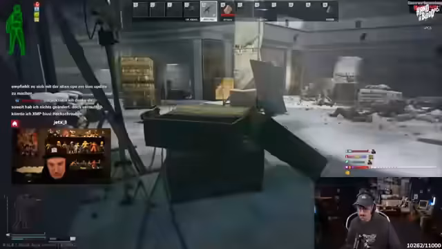 04:10:58Der Streamer ist in einem intensiven Spielmodus, wo er mit seinen Kameraden zusammenarbeitet, um Gegner zu bekämpfen und Loot zu sammeln. Er strategisch vorgeht, um sich nicht zu gefährden, und kommuniziert ständig mit seinen Teammitgliedern über Standorte und Aktionen. Es kommt mehrere Male zu Gefechten, wobei er auf Gegner schießt und versorgt, während er gleichzeitig darauf achtet, nicht selbst angegriffen zu werden.