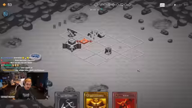 02:02:35Während des Spiels von 9 Kings werden taktische Entscheidungen getroffen und Probleme mit der deutschen Übersetzung der Karten diskutiert. Der Sitzer versucht, die Effekte von Karten wie Steinbruch und dem Kessel zu verstehen und anzuwenden. Es kommt zu Diskussionen im Chat mit einem Melvin, um die genauen Mechaniken zu klären, insbesondere was als "Gebäude" oder "Turm" gilt und welche Karten sich darauf auswirken. Der Verlauf der Runde wird detailliert beschrieben, mit dem Fokus darauf, einen starken Trupp wie den Trebuchet zu buffen, während der Feind ständig stärker wird.