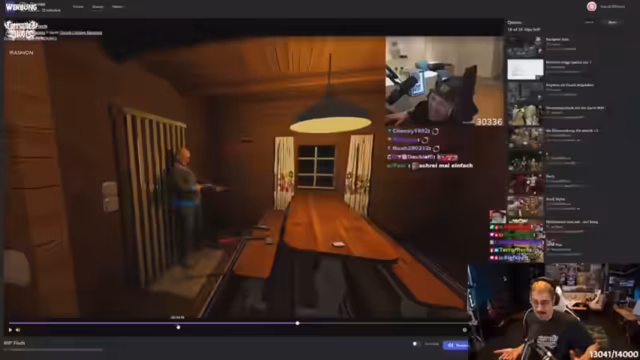 01:42:02Der Stream springt zwischen verschiedenen Themen. Er zeigt einen Clip, bei dem ein ihm unbekannter Streamer ins Mikro furzt, was ohne den Kontext nicht so wirkungsvoll ist. Im Anschluss begrüßt er Tamina, eine bekannte Content-Creatorin und Modedesignerin, die heute anwesend ist. Mit Humor erwähnt er ihren Begleiter in Rüstung und wünscht deren Partner Erfolg beim bevorstehenden Event. Dabei erzählt er die Anekdote, wie deren Freundin ihm bei einem früheren Turnier viel Glück gewünscht hatte, was er damals als Beleidung missverstand. Dies führte zu einer großen, gemeinsamen Feier mit einem reichlich gefüllten Pokal.