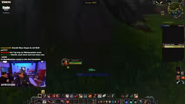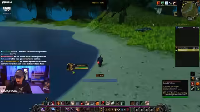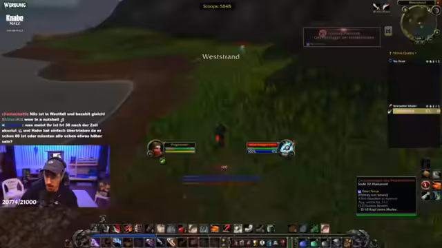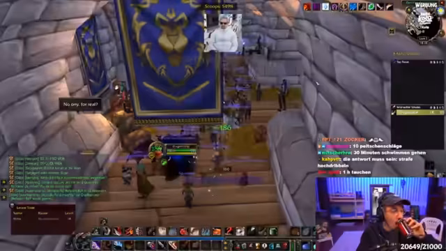 02:57:31Während des Weges nach South Shore gerät der Streamer auf eine Diskussion über die Lore des World of Warcraft-Universums. Er spricht über Burg Durnholde, die in Wrath of the Lich King zu einer Hauptstadt in Nordend wird. Dabei kommt es zu einer Diskussion über die Allianz und die Horde, und ein User verteidigt die Allianz, was zu einer kontroversen Stimmung im Chat führt.