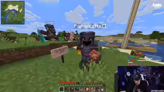 07:36:27Der Streamer konzentriert sich darauf, eine Villager-Farm zu erstellen, um später mit diesen handeln zu können. Er baut zehn Shoppingkammern und sammelt Ressourcen wie Papier und Erde. Gleichzeitig führt er Gespräche mit anderen Teilnehmern und tauscht Ressourcen wie Eisen gegen Netherit und andere Items aus. Er beschreibt den Handel als ehrliche Arbeit und interagiert intensiv mit dem Chat, um Materialien zu organisieren.