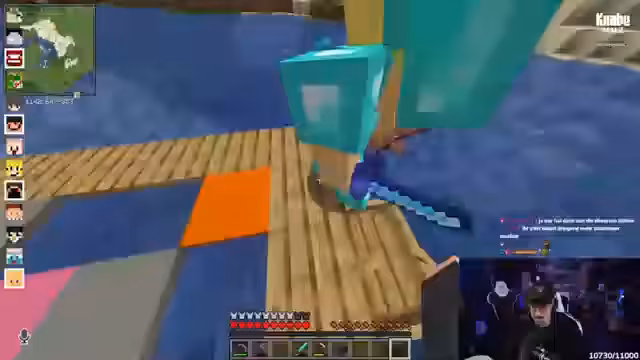 03:51:36Der Streamer beginnt mit technischen Unstimmigkeiten, während er auf das Eintreffen weiterer Spieler wie Mina wartet. Nachdem die Gruppe auf dem Server zusammengefunden hat, schlägt ein spontanes Turmspringen-Event vor. Es wird ein Spiel mit Totems, Rüstung und Blöcken konzipiert, bei dem nacheinander von einem Turm gesprungen und Blöcke im Wasser platziert werden, um den Sprung ins Wasser zu erschweren.