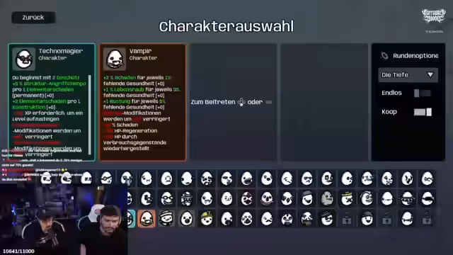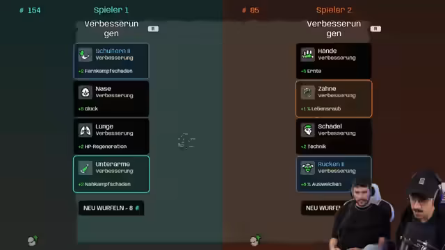 00:17:12Der Fokus verlagert sich auf den bevorstehenden Koop-Modus von Brotato. Es werden die DLC-Charaktere besprochen und ihre Stärken analysiert. Streamer und Partner planen, mit spezifischen Builds zu starten: Der eine spielt den 'Wanderer', der durch ständiges Laufen Ressourcen generiert, der andere den 'Ganoven', der Items stehlen kann. Diese Stahl-Mechanik birgt das Risiko, dass immer stärkere Elite-Gegner spawnen, was eine strategische Herausforderung darstellt.