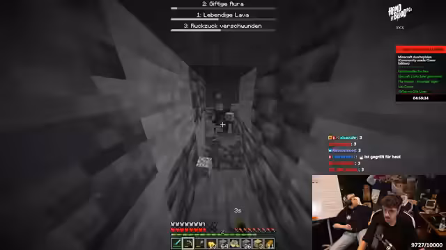 13:02:32Es wird über die Mechaniken des Wardens und dessen Spawn-Bedingungen gesprochen. Der Warden spawnt, wenn ein blauer Spawner dreimal ausgelöst wird. Es wird empfohlen, sich nicht zu bewegen, wenn der Warden spawnt, da er einen Deespawn-Timer von sechs bis sieben Minuten hat. Es folgt eine Diskussion darüber, ob der aktuelle Spielverlauf dem ursprünglichen Plan entspricht, Aufgaben ingame zu lösen, anstatt das Spiel einfach durchzuspielen. Es wird angemerkt, dass der Seed des Spiels zunächst sehr vielversprechend aussah, aber zunehmend schwieriger geworden ist, insbesondere mit dem Auftauchen des Wardens im Stronghold. Die Gruppe überlegt, wie sie mit den Blöcken umgehen soll, die Signale senden, und beschließt, sich anzuschleichen, um keine Geräusche zu verursachen. Es wird die Frage aufgeworfen, was aus Minecraft geworden ist und warum sich der Warden im Stronghold befindet. Die Spieler versuchen, den Spawner zu umgehen, indem sie sich anschleichen und Geräusche vermeiden, was an einen Horrorfilm erinnert. Es wird überlegt, ob man eine Truhe öffnen darf, ohne zu viel Lärm zu machen, und die Spieler entdecken eine Geode. Es wird die Frage aufgeworfen, wie man zum Max kommt und wie man den Warden vermeidet, der erst nach Geräuschen spawnt. Es wird überlegt, ob der Seed der Map manipuliert ist und die Spieler fühlen sich von den Entwicklern "verarscht". Es wird betont, dass Krokos Anwesenheit aufgrund seiner Geräusche problematisch sein könnte. Es wird davor gewarnt, negative Abstimmungen durchzuführen, da dies als "maßlos" empfunden würde.