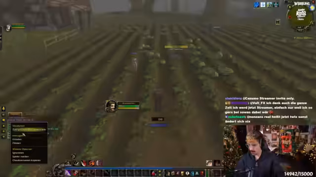 02:00:56Am 27. Dezember startet ein großes Hardcore-Event in WoW, bei dem Teilnehmer Charaktere von Level 1 beginnen und bei Tod verlieren. Hanno plant als Main Tank (wahrscheinlich Zwerg-Krieger) und weitere Creator wie Broki, Noway und Repas diskutieren ihre Rollen. Wetten laufen über Überlebenschancen, wobei die Allianz als 'weicheier' bezeichnet wird. Der Streamer betont die Herausforderung: Bis Level 60 braucht man 300+ Stunden, ein Verlust wäre existenziell. Alle Teilnehmer müssen im Discord koordinieren, um Chaos zu vermeiden.