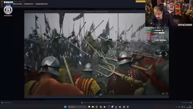 02:05:45Das neue Spiel 'Chronicles Medieval' wird vorgestellt – ein Mittelalter-Sandbox ohne Fantasy-Elemente, inspiriert von Mount & Blade. Es fokussiert auf Schlachten, Burgenbau und politische Intrigen in einer realistischen europäischen Setting. Der Trailer zeigt epische Massenschlachten, aber kein direktes Gameplay. Der Streamer lobt das Konzept als 'Geistiger Nachfolger' von 'Manor Lords' und hofft auf Singleplayer-Tiefe. Da es frühen Zugang noch nicht hat, bleibt abzuwarten, ob es das Genre bereichert.