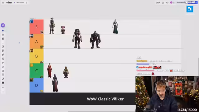 02:59:17Der Streamer kündigt ein World of Warcraft Hardcore Event an, das ab dem 27.12. jeden Tag live auf seinem Kanal stattfinden wird. Als Vorprogramm wird geplant, die Startgebiete von WoW Classic in einer sogenannten Tierlist zu ranken. Die Bewertung soll dabei objektiv und fachlich erfolgen, wobei jedoch festgestellt wird, dass einige verwendete Bilder nicht dem Classic-Stil entsprechen.