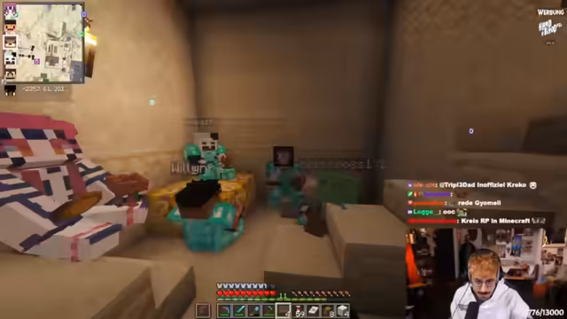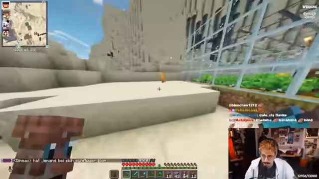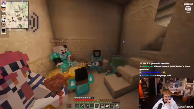 08:42:48Nachdem das Konzert-Kapitel beendet ist, wendet sich der Streamer wieder seinen langfristigen Projekten zu. Er leitet einen anderen Spieler an, Sand für ein wichtiges Projekt abzubauen und zeigt ihm dabei eine effiziente Grube. Gleichzeitig steht der Bau einer Mob-Farm im Fokus, die jedoch noch nicht vollständig ist. Parallel dazu brodelt eine private Krise, die ihn stark emotional belastet. Er offenbar seine Frustration über eine komplexe Beziehungsdynamik, in der er sich zwischen Server-Aktivitäten und der Pflege seiner realen Partnerschaft hin- und hergerissen fühlt und sich schuldig macht.
