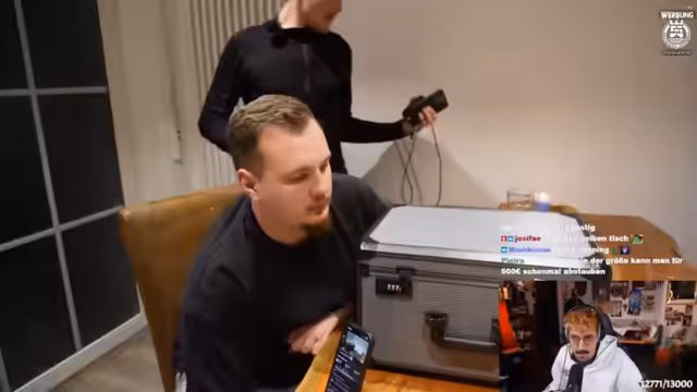 08:24:15Die Unterhaltung schlägt in eine unvorhergesehene Richtung ein, als der Streamer spontan ein Konzert für den Sänger 'Alphastein' plant. Dieser ist ein aufstrebender Künstler mit über 100.000 monatlichen Spotify-Hörern. Die Gruppe diskutiert über die Details der Veranstaltung, die in Craft Attack stattfinden soll, und benötigt dafür eine aufwändige Bühne. Dies initiiert eine schnelle Rekrutierung von Talenten; Basti GHG und Zabix werden als potenzielle Bühnenbauer ins Gespräch gebracht. Der Streamer agiert hier als Manager und verhandelt prozentuale Beteiligungen an den Ticketeinnahmen, was die Situation zu einem kuriosen Business-Gespräch werden lässt.