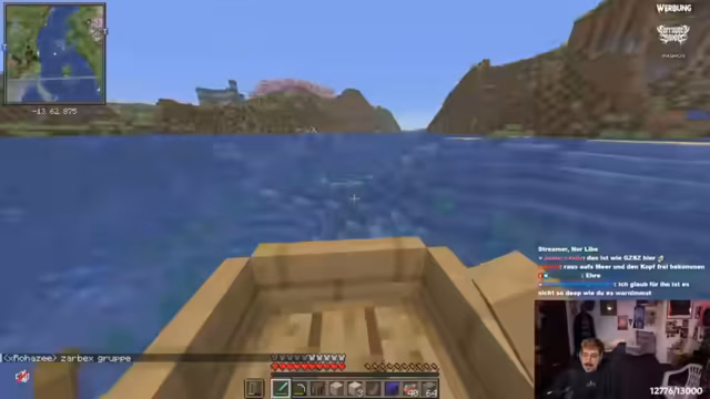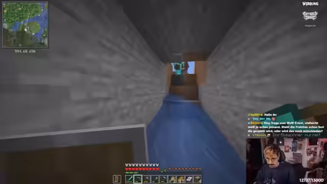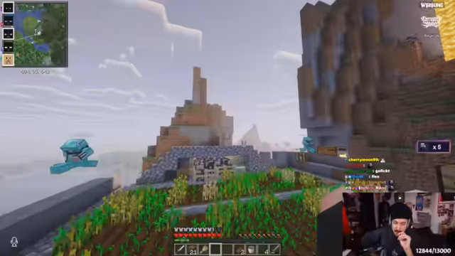 07:40:58Nachdem erkannt wird, dass lokale Dörfer bereits von anderen Spielern geplündert wurden, bricht ein Mitglied zu einer weiten Reise auf, um neue Dörfer zu finden. Ziel ist es, Karotten zu handeln, um Villager mit dem richtigen Beruf für den Handel mit verzauberten Büchern zu erhalten. Die Reise erweist sich als gefahrvoll und zeitintensiv, während der Chat als unzuverlässige Informationsquelle kritisiert wird.