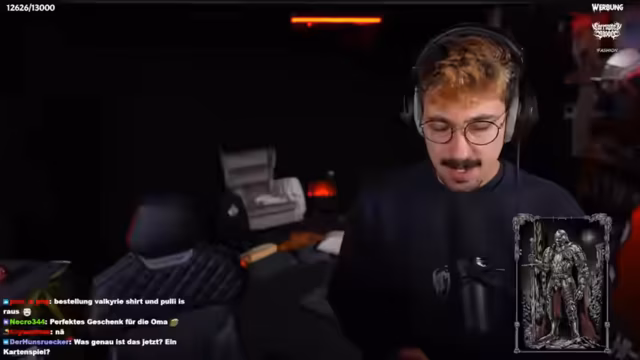 02:22:27Der Streamer stellt den neuen Corrupted Blood Drop vor, der in Zusammenarbeit mit der Fantasy-Band Blind Guardian entstanden ist. Drop enthalten sind vier Charaktere wie Dragon Slayer und Blood Priest, die als hochwertige T-Shirts und Hoodies erhältlich sind. Besonderes Merkmal sind NFC-Sammelkarten, die per Handy gescannt werden können und Zugang zu exklusivem Content wie Story-Entwicklung und dem Zeichenprozess des Illustrators bieten. Es werden Details zu den Designs und zur begleitenden Lore erläutert.