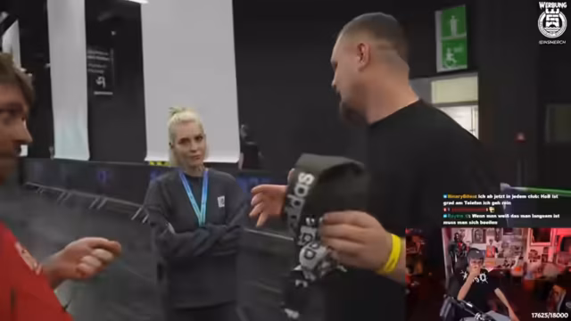 05:59:33Der Streamer plant, sich bei Holly für den anderen in der Schlange anzustellen, um ein Autogramm zu holen, während dieser einen Hotdog isst. Es wird über das Filmverbot während der Autogrammstunde gesprochen und technische Lösungen erwogen. Eine Gruppe versucht, Kevin aus der Schlange bei Holly zu holen, nachdem sie erfolgreich sein Autogramm erhalten haben, um sofort zu Baso zu eilen und die Überraschung perfekt zu machen.