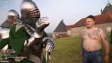 08:00:13Nachdem sich die Streamer mit der Rüstung ausgerüstet haben, geben sie erste Einschätzungen zu ihrem Tragekomfort und der Passform. Eine Rüstung kann bis zu 1700 Euro kosten und wie ein Führerschein in der Apokalypse nützlich sein. Es werden Turnierabläufe erklärt, bei denen Punkte für eine Gesamtwertung gesammelt werden können. Der Streamer äußert seine Bewunderung für die Ritter und den Sport und zitiert dabei den Spruch "Der Adler frisst keine Fliegen". Im Chat werden Memes und Anleitungen zur Anpassung der Rüstung ausgetauscht.