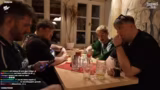 03:33:17Ein langes und detailliertes Yu-Gi-Oh!-Duell steht im Mittelpunkt. Die Spieler verwenden originale Karten aus der OG-Zeit. Die Partie ist emotional aufgeladen und voller Insider-Witze, die an die Anime-Serie anknüpfen. Es werden alte Regeln gespielt und Charaktere wie Yugi Muto und Seto Kaiba parodiert. Das Duell ist ein Highlight des Streams und zeigt die gemeinsame Leidenschaft für das Spiel, das als Nostalgieelement dient und die Stimmung auflockert.