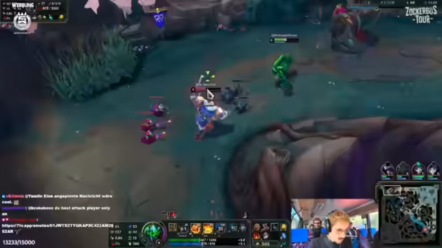 01:41:43Während des League of Legends Spiels kam es zu mehreren und intensiven Aktionen und Team-Combos. Gleichzeitig standen die Streamer vor erheblichen technischen Schwierigkeiten, darunter eine instabile Internetverbindung, Probleme mit der Mikrofonanlage und diversen Kabeln. Diese Aspekte prägten den Ablauf und die Gesamterfahrung der Zockerbus-Tour maßgeblich.
