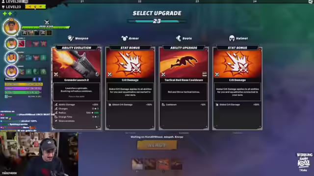 04:20:07Es wird angekündigt, dass die Menace Demo am Montag um 16 Uhr erscheint. Es wird über die Präsentation des Spiels im letzten Jahr gesprochen und die Vorfreude auf das Spiel betont, obwohl das XCOM-artige Gameplay nicht jedermanns Sache ist. Das aktuelle Spiel, 'Out of Time', wird als generische Multiplayer-Hub-Lobby beschrieben. Während des Tutorials wird festgestellt, dass die Items die Klasse bestimmen und es keine festen Klassen gibt. Die Metaprogression weckt großes Interesse und es wird überlegt, wie man die Fähigkeiten am besten einsetzt. Es werden Setboni entdeckt und Upgrade-Karten gefunden. Es wird überlegt, welche Klasse jeder spielen soll, um alle abzudecken. Das Look and Feel des Spiels wird als sehr Fortnite-artig empfunden, und es gibt leichte Performance-Probleme.