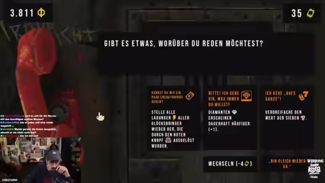 06:07:29Eine neue Herausforderung wird angenommen, bei der eine bestimmte Summe erreicht werden muss. Ein Zuschauer unterstützt mit einer großzügigen Spende, was zu großer Freude führt. Die Kosten für das Spielen am Automaten steigen nach jeder Deadline, was eine zusätzliche Herausforderung darstellt. Es werden verschiedene Boni und Eigenschaften erforscht, die das Spielerlebnis beeinflussen, darunter die Verdopplung des Werts bestimmter Symbole und das Hinzufügen von Zockereigenschaften zu Glücksbringern. Sprachnachrichten werden ins Spiel integriert, die zusätzliche Boni bieten. Es wird eine Strategie entwickelt, wie man die Boni optimal nutzen kann, indem man vor der letzten Runde einer Deadline Einzahlungen vornimmt. Es werden verschiedene Fähigkeiten und Glücksbringer ausgewählt, um die Gewinnchancen zu erhöhen. Die Community wird aktiv in die Entscheidungsfindung einbezogen, indem sie über verschiedene Optionen abstimmt. Es wird ein Twitch-Konto mit dem Spiel verbunden, um zusätzliche Funktionen freizuschalten.
