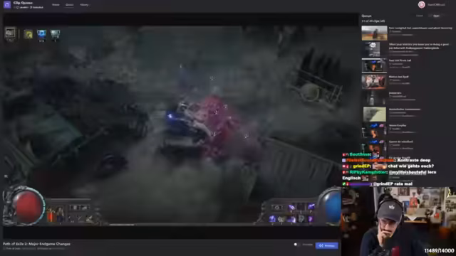 02:48:30Der Streamer erkundet eine Spielwelt, die mit Schreinen und Gegnern wie Goblins und Skeletten gefüllt ist. Nach dem Zerschmettern eines Topfes der Gier stellt er fest, dass das Spiel ihm zu spät vorkommt und die Gegner immer teurer werden. Er findet ein Bossportal und stellt sich dem ersten Boss, dem Bolzenschwein, dem Schrecklichen, gegenüber. Der Kampf ist holprig, und der Streamer muss sich heilen, da er die Gegner nicht mehr auf einen Schlag besiegt.