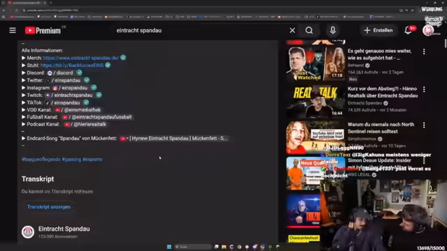 00:12:32Der Streamer berichtet über ein anstehendes Derby am Montag. Er berichtet von einem Fußballspiel am Wochenende, das gegen den zweiten Platz der Tabelle stattfand und 5:0 gewonnen wurde. Es gab ein Derby und viel Drama, einen Schiedsrichter, der Fanlager hinter den Zaun schickte, und einen gegnerischen Vater, der ständig schrie. Es wird ein Test-Stream mit einer automatischen Kamera erwähnt, sowie die Organisation im Verein Eintracht Spandau e.V., der in der Prime League spielt. Der Frauenfußball im Verein wird ebenfalls thematisiert.