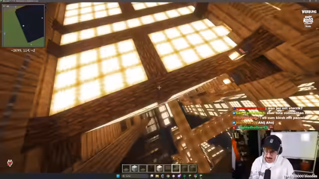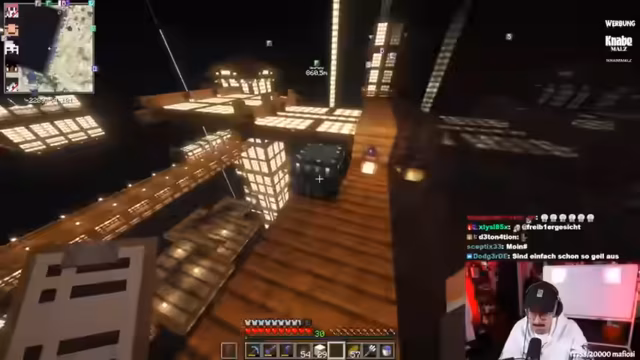 08:00:19Der Streamer kämpft mit der Platzierung eines Gebäudes, das mit einer Brücke kollidiert. Es werden Optionen diskutiert, wie die Brücke angepasst oder die Unterseite des Gebäudes gekürzt werden könnte. Die Teammitglieder überlegen, ob ein Gebäude an der Decke oder an der Wand besser wäre. Eli wird humorvoll kritisiert, weil er Hayday spielt, anstatt zu bauen, was als schlechtes Beispiel für einen Geschäftsführer angesehen wird. Willi, der nicht an einem Turnier teilnehmen kann, droht scherzhaft, alle Teilnehmer mit Genesungsdingen aus der Apotheke zu versorgen, um sicherzustellen, dass sie nicht krank werden und er auf der Warteliste bleiben kann. Es wird über die Anzahl der Tode im Spiel gesprochen, wobei ein Spieler scherzhaft mit Schradin verglichen wird, der viele Tode hatte. Die Diskussion kehrt zum Bau zurück, wo über die Platzierung von hängenden oder an der Wand befestigten Gebäuden gesprochen wird. Es wird vorgeschlagen, einen Fahrstuhl mit Seelensand einzubauen und die obere Etage des Turms als Büro zu gestalten, um eine Abwechslung zum asiatischen Stil zu schaffen.