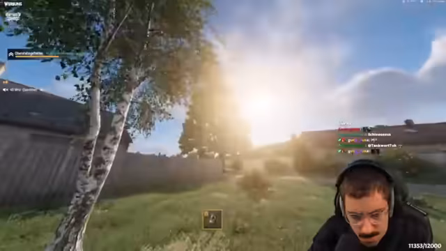 03:35:56Das Team interagiert versehentlich mit Gegnern, als sie einen Notarzt-Heli für feindlich halten. Ein Server-Crash führt zu Problemen, und das Team muss sich neu gruppieren. Der Streamer erklärt Spielmechaniken wie das Erkennen von Feinden durch Armbandfarben.