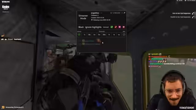 04:23:12Der Stream startet mit einem hocherwarteten Kooperationsprojekt, bei dem der Streamer "handofblood" und seine Gruppe gemeinsame Einsätze in einem Militärspiel durchführen. Die Gruppe plant, in mehrere Gebiete einzudringen und strategische Punkte einzunehmen. Dabei kommt es zu technischen Problemen und Game Crashes, die den Ablauf zunächst stören.