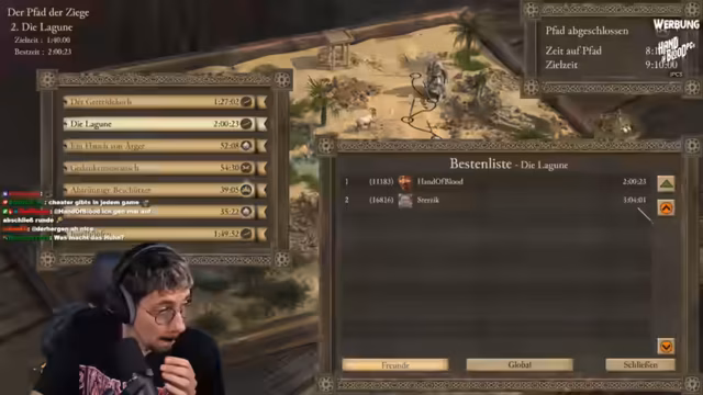 06:41:51Nachdem die aktuelle Mission, der Pfad der Ziege, nach mehreren Versuchen und Fehlern erfolgreich abgeschlossen wurde, wertet der Streamer seine Leistung aus. Er äußert seine Unzufriedenheit mit dem Missionsdesign und der Schwierigkeitskurve. Anschließend vergleicht er seine Zeit mit Highscores aus der Freundesliste und einer globalen Rangliste, wobei er beeindruckt ist von den Zeiten der Top-Spieler und überlegt, ob man die Missionen neu spielen sollte, um eine bessere Zeit zu erzielen.