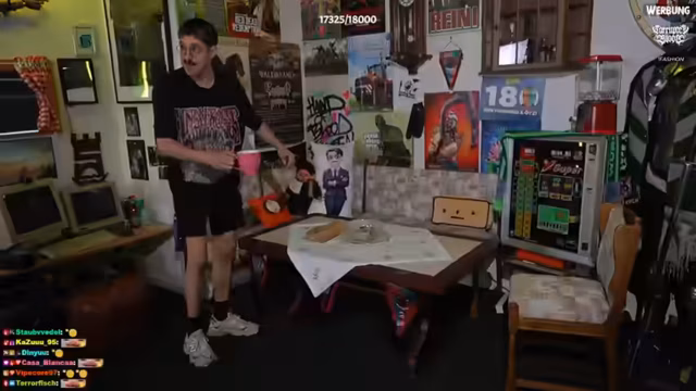 01:16:45Nachdem die Clip-Queue nicht mehr die gewünschte Resonanz findet, wechselt der Streamer zu Reaktionen. Er zeigt eine Spiegel-TV-Dokumentation aus dem Jahr 2006 über eine legendäre Esso-Tankstelle an der Hamburger Reeperbahn. Der Streamer ist begeistert vom Setting der Nuller Jahre und kommentiert die Darstellung des Tankwarts, der maßgeschneiderte Dienstleistungen für seine Kunden anbietet, inklusive teurer Autopolituren, und stellt die Frage, wie viel solche Leistungen heutzutage kosten.