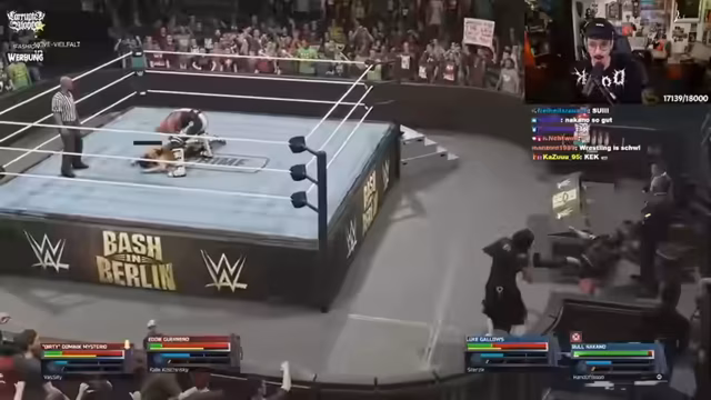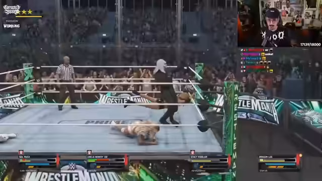 02:30:28Der Stream startet mit einem chaotischen Wrestling-Spiel. Es kommt zu heftigen Kämpfen, unerwarteten Angriffen und Verwirrung über die Spielregeln. Charaktere schlagen sich mit Vorschlaghammern, werden aus dem Ring geworfen und klammern sich an den Seilen. Eine Besonderheit ist die Figur 'Onkel Howdy', die ungewöhnliche Aktionen wie Kuscheln und anschließende Angriffe ausführt, was zu unvorhersehbaren Situationen führt. Das Gameplay wirkt dynamisch und humorvoll, da der Streamer die Action live kommentiert und über die Absurditäten des Spiels lacht.